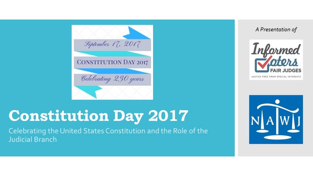 Constitution Day 2017 is fast approaching and the Informed Voters, Fair Judges project has created new Constitution Day resources for use in upcoming presentations. Among these resources you will find the Constitution Day 2017 PowerPoint presentation and a short Informed Voters, Fair Judges PSA video. Additionally, IVP has produced a webinar to walk presenters through the Constitution Day 2017 PowerPoint, providing an overview of the Informed Voters, Fair Judges project and strategies for a successful presentation. Each of these resources is provided below and can be used to educate the public about the judicial branch.
