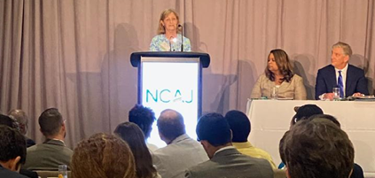 Congratulations to our two Co-Chairs of the Judicial Independence Committee! Justice Robin Hudson of the Supreme Court of North Carolina and Justice Debra Stephens of the Washington State Supreme Court both received recognition recently for their outstanding judicial service. Justice Robin Hudson of the Supreme Court of North Carolina was recently awarded the Appellate Judge of the Year Award from the North Carolina Advocates for Justice, the largest trial lawyers association in the country. Justice Hudson will be retiring from the Supreme Court at the end of the year after serving in the North Carolina appellate courts for 22 years! The photograph includes Justice Hudson with attorney Mark Sumwalt and incoming NCAJ president Valerie Johnson. Justice Hudson’s commitment to judicial independence and public education has benefitted the public and NAWJ membership for many years. Congratulations to Justice Hudson and thank you for your longstanding service.